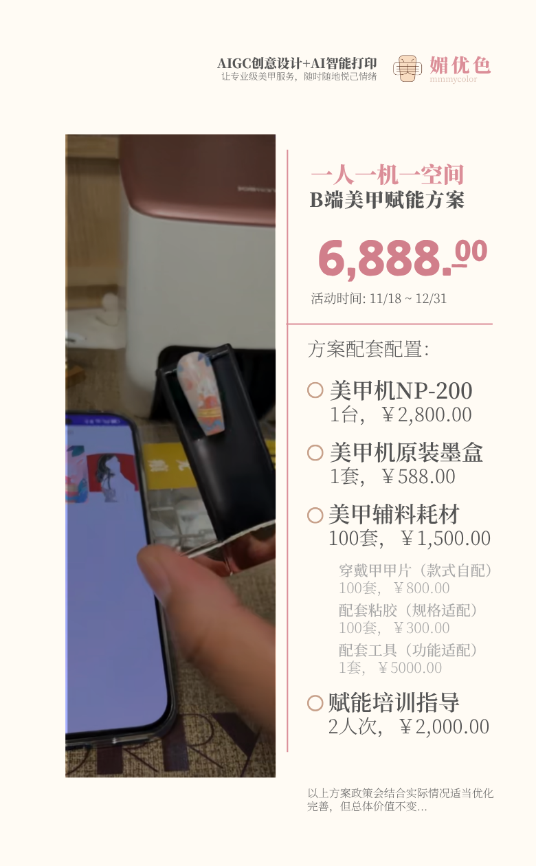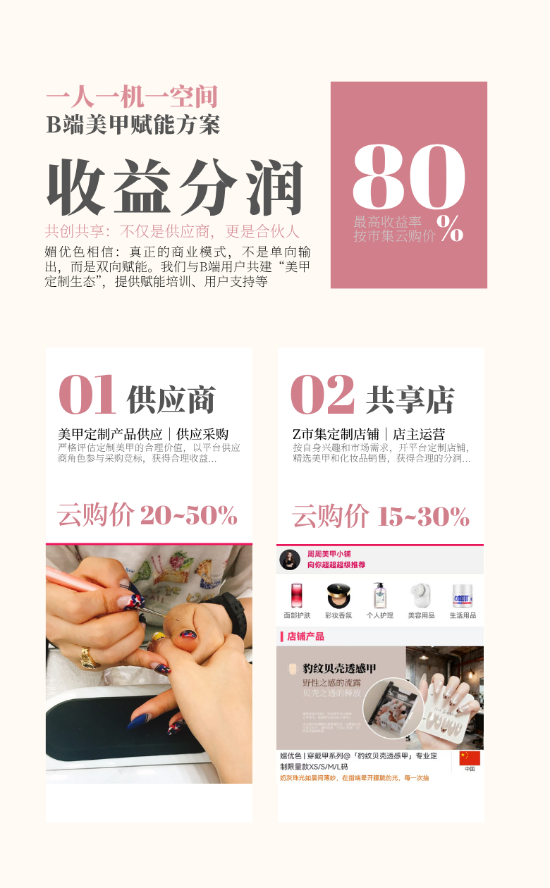 媚优色 | B端AI定制美甲「一人一机一空间」轻资产创业赋能服务